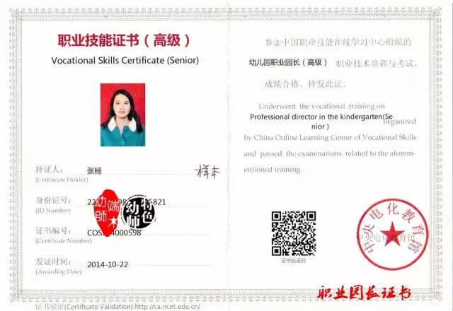 高级职业园长证样本