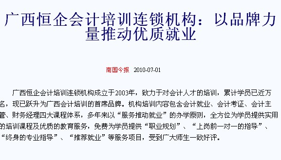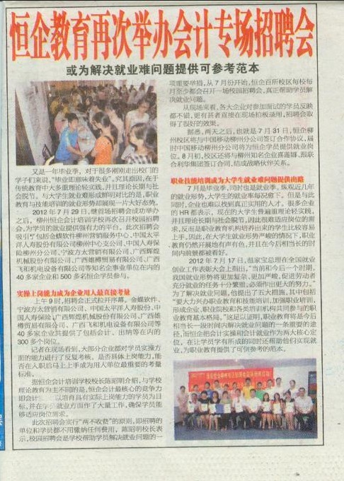 《南国今报》报道柳州校区会计专场招聘会