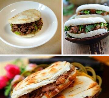 肉夹馍是古汉语“肉夹于馍”的简称,中国陕西省汉族特色食物之一。陕西地区有使用白吉馍的“腊汁肉夹馍”、宝鸡西府的肉臊子夹馍(肉臊子中放食醋)、潼关的潼关肉夹馍(与白吉馍不同,其馍外观焦黄,条纹清晰,内部呈层状,饼体发胀,皮酥里嫩,火功到家,食用时温度以烫手为佳,且老潼关肉夹馍是热馍夹凉肉,饼酥肉香,爽而不腻)。肉夹馍是陕西著名小吃。外地人首次听说肉夹馍,都认为是病句,这是与古汉语有关,肉夹馍,其实是"肉夹于馍"。“肉”字放在前面起到强调的作用,引人垂涎。