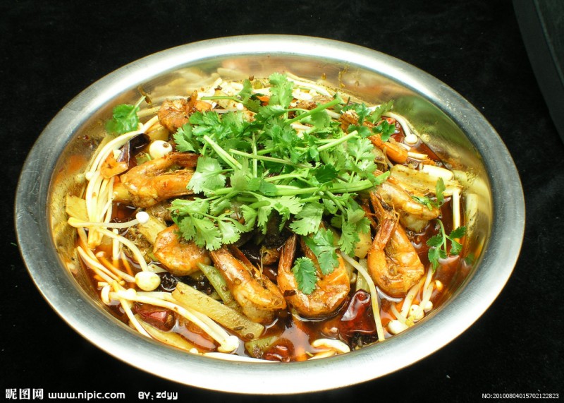 麻辣香锅,主材料选用虾、蟹、田鸡、肥肠等,配上野山菌、青笋、腐竹、土豆等素菜,炒出麻辣鲜香味道,虾鲜、肠脆、肉嫩,笋片清香,腐竹可以吸收各种肉类和海鲜的鲜味,加上本身的香味,混合起来,成就了“一锅香”。内容混搭有荤、有素、有淡、有辣、有自然形成、也有人为加工,看上去已觉天南地北的食材,融入一锅,就如时尚界将五颜六色混搭在一起一样,享受的是丰富与多样。