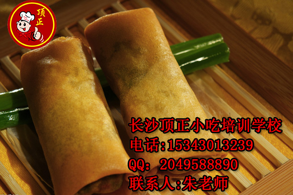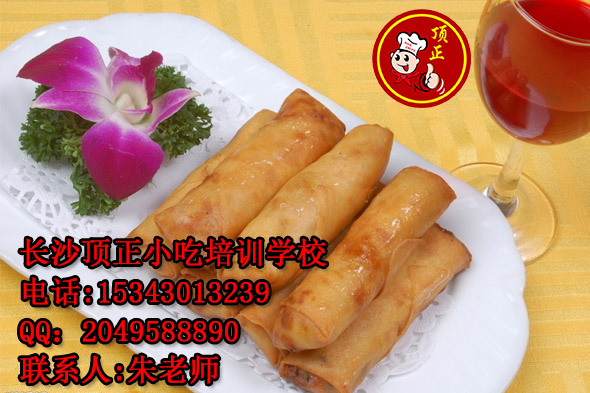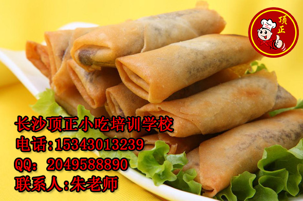 春卷是用上白面粉加少许水和盐拌揉捏,放在平底锅中摊烙成圆形皮子,然后将制好的馅心(肉末、豆沙、菜猪油)摊放在皮子上,将两头折起,卷成长卷下油锅炸成金黄色即可。春卷皮薄酥脆、馅心香软,别具风味,是春季的时令佳品。