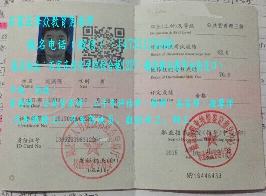 劳动局按摩师证、美容师证、厨师证、汽车维修工证、面点师、钳工、电工、焊工、管工、木工、绿化工.....我中心均可办理,免培训,免考试,取证速度快,证书全国通用,国家联网查询!!!