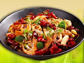 长沙麻辣香锅培训:主料选用虾、蟹、排骨、肥肠等,配上野山菌、青笋、腐竹、土豆等素菜,炒出麻辣鲜香味道