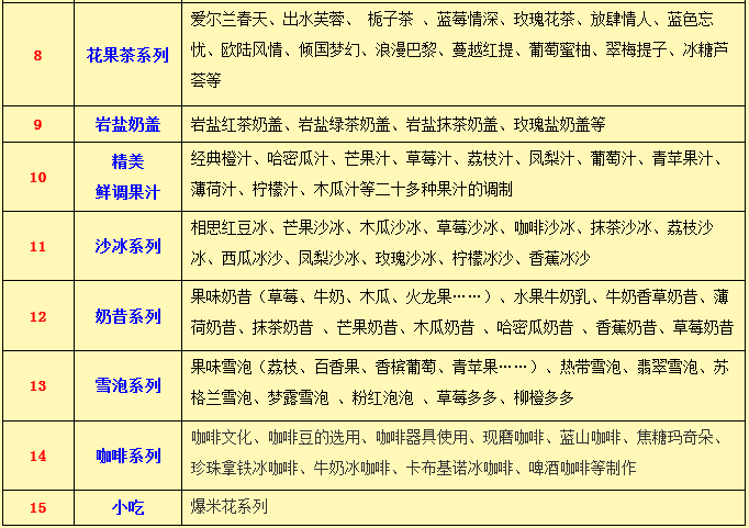 有早餐饼、早餐汤粉、早餐包点、正餐、炒菜、快餐类、奶茶、冷饮、油炸技术、甜品、夜宵烧烤、酱板、霸王、卤菜、特色小吃等技术,看到本信息请与湘源地芹芹经理联系有优惠!