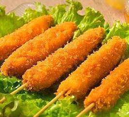 四:到了现在,准备工作都做好了,就该教学员开启油炸炉,把握油温、裹浆、油炸、再裹浆、再油炸,炸好之后,再根据顾客的需要刷上适当的酱料,这样就制作好了一串好吃的油炸串串香哦。这个过程,师傅会着重教学,学员会反复实践,亲手操作各类食材,自己油炸,自己掌握油温火候,自己刷酱聊。经过这样的学习,学员就能踏实的掌握油炸小吃的全部技术诀窍和核心配方了。