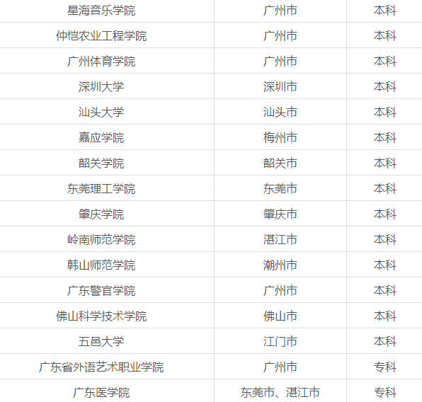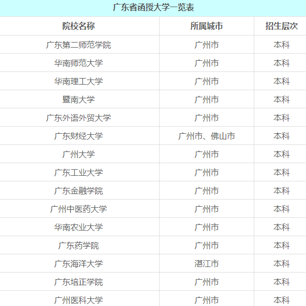这些函授大学分布在广州、佛山、湛江、深圳、东莞、惠州、肇庆、韶关、梅州、江门、汕头和潮州等城市。除了本部之外,各函授大学还在省内其他县市设立了教学点,考生不必担心地域的问题。