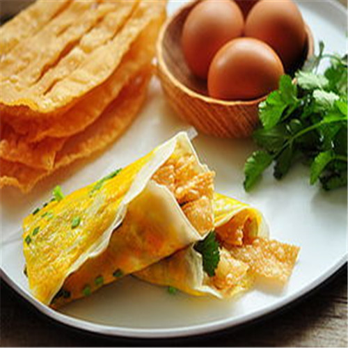 2、 煎饼翻面的时候要小心,一定等一面煎的微黄时再翻,否则容易破损。