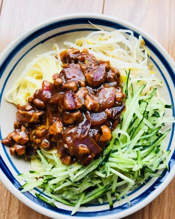 炸酱面是北京富有特色的食物,炸酱面在北京的流行程度,从老北京关于炸酱面的顺口溜可见一斑:“青豆嘴儿、香椿芽儿,焯韭菜切成段儿;芹菜末儿、莴笋片儿,狗牙蒜要掰两瓣儿;豆芽菜,去掉根儿,顶花带刺儿的黄瓜要切细丝儿;心里美,切几批儿,焯江豆剁碎丁儿,小水萝卜带绿缨儿;辣椒麻油淋一点儿,芥末泼到辣鼻眼儿。炸酱面虽只一小碗,七碟八碗是面码儿。”地道的六必居酱料、调和特殊工艺制成三弦劲宽面身,根根入味,口感爽滑,嚼劲十足,让你感受地道的老北京风味。