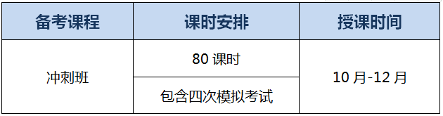 教学目标:也叫模串班,通过四次模考,考生体验全真考场感受,考后老师讲评,考生能够合理分配考试时间,并能对知识点进行查漏补缺,老师同时也会进行押题,预测命题态势,使考生能够以较佳状态上阵