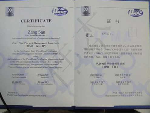 B级(Level B):认证的国际高级项目经理(Certified Senior Project Manager)获得这一级认证的项目管理人员可以管理大型复杂项目,或者管理一项国际合作项目。