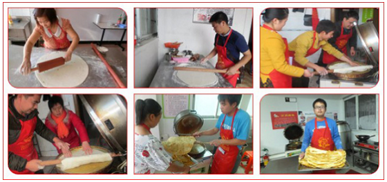 按照北方千层饼标准的比例配方和制作方法,老师手把手教学,学员亲自动手操作,反复练习,直到做出学员满意的口味为止,不限定学习时间。