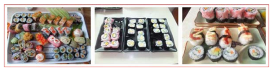 7、压模寿司类:三文鱼箱寿司、腌肉芝士箱寿司、烤鳗鱼箱寿司、棒棒虾箱寿司、吞拿鱼箱式寿司、蟹子青瓜箱寿司等;