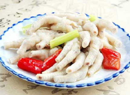 凤爪,是鸡爪在餐饮界的民间别称。泡椒,是川菜中特有的调味料,色泽红亮、辣而不燥、辣中微酸。泡椒凤爪,是川渝地区民间所特有的美食,泡椒凤爪流行于现代大都市的大街小巷,就是因为泡椒凤爪以麻辣有滋、皮韧肉香著称,其肉丰满洁白,咀嚼时骨肉生香而大受欢迎。