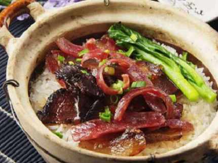 煲仔饭,广东的特色美食,煲仔饭较大的特色,一是那明晃晃的瓦煲,二是那金黄色泽的锅巴。只要购买到瓦煲学会控制火候就能做好煲仔饭。煲仔饭的锅巴,粒粒清晰可见的丝苗米被光滑的煲底烧出了一层金黄色的锅巴,干香脆口,用勺子拨动煲口的锅巴,沿着煲把勺子深到煲底,可以轻易地将这个煲底的锅巴都剥了下来,在嘴里慢慢嚼动,齿间留香,回味无穷。