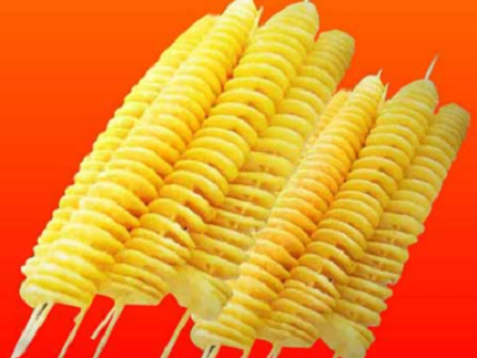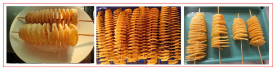2、再将新鲜马铃薯经过专用机器旋转切花后,就成为整颗旋转切花的马铃薯!