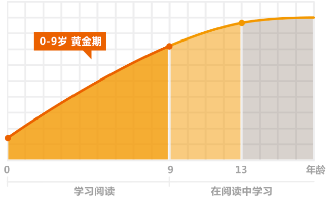 9岁以前,“学习阅读”阶段,培养阅读能力的黄金期。9岁-13岁,“在阅读中学习”阶段,不断巩固阅读理解能力。