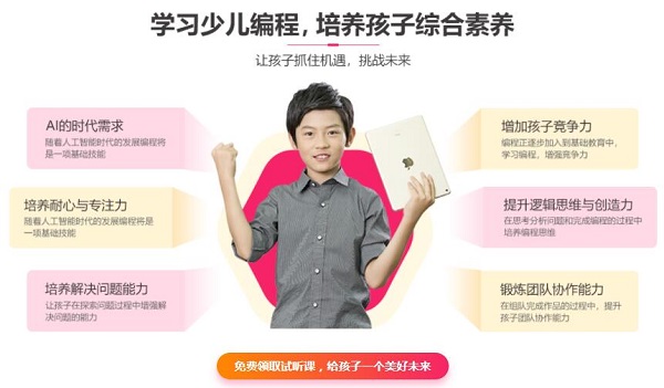 在少儿编程课程的学习过程中,对于孩子们的诸多能力培养能够起到的作用是非常明显。首先就是体现在孩子的学习能力上,这也是家长非常关于的能力建设。通过编程课程引起孩子的学习兴趣,让孩子感受到关于知识增长的美妙,同时,也是由于这样的课程学习,让孩子们清楚了自己能够通过掌握一门技术,而创造出更加新奇的事物,为更多的人带来新的改变。
