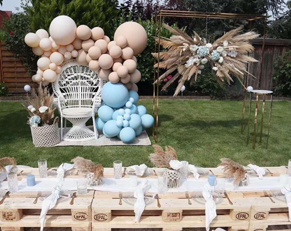 既然气球与花艺都是营造浪漫氛围的必备,那么不妨将二者结合起来。既不用担心买太多花草花费太多钱,又避免了全都是气球给人特别廉价的感觉。这种组合可以说是性价比最高的方式啦。
