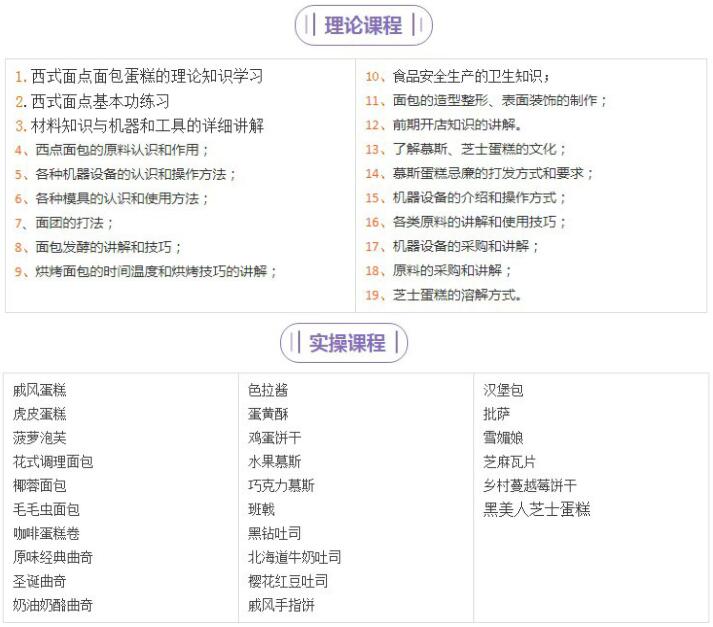 甜品、调酒、咖啡、西点、蛋糕、咖啡豆烘焙、翻糖蛋糕技术等培训。