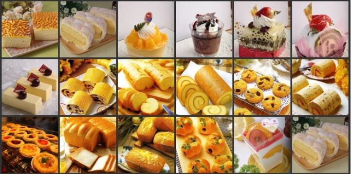 戚风蛋糕、虎皮蛋糕、天使蛋糕、椰茹卷、卡夫蛋糕、香蕉蛋糕、瑞士卷、千蛋蛋糕、黑森林蛋糕胚、巧克力椰子蛋糕、哈雷蛋糕、黄金切片蛋糕、生日蛋糕胚、英式磅蛋糕、布朗尼、开心果方枕、瑞士千层蛋糕、辣妹蛋糕、摩卡蛋糕、红枣蛋糕、轻乳酪蛋糕、铜锣烧、水晶蛋糕卷、玛德淋蛋糕、卡夫奶酪蛋糕、天使蜜豆蛋糕、芒果千层、榴莲千层、黑美人芝士蛋糕、马卡龙