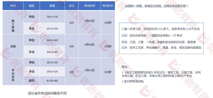主要考三法两条例:建筑法,招标投标法,合同法。两条例:质量管理,安全管理条例。