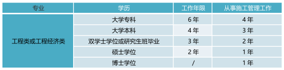 2.具有工程类或工程经济类大学专科以上学历并从事建设项目施工管理工作满 20 年。