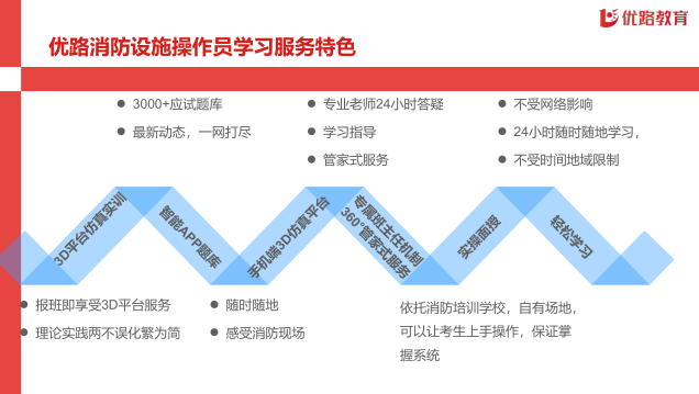 优路教育品牌主要从事工程、财经、教师行业准入类职业(执业)资格认证培训业务、专本科学历继续教育业务。包括:建设工程类执业资格考前培训,如建造师、消防工程师、工程师、造价工程师、监理工程师、咨询工程师(投资)、安全工程师、环境影响评价师等认证培训;财经类职业资格考试培训,如中级经济师、中级会计师、银行招考、银行从业资格、证券从业资格等认证培训;教师类资格考试培训,如教师资格证、教师招聘考试、特岗教师考试等。