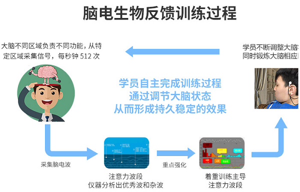 博瑞思注意力训练利用大脑思考所发出的电波,分析大脑的注意力程度。当大脑高效使用时,博瑞思训练从声音、线状图、电脑画面、得分等方面出现奖励形式;大脑低效使用时,训练仪会出现画面、评价反馈提醒,让学员及时调整状态。高效用脑状态被不断奖励,而低效用脑被提醒和及时自我调整和老师辅助纠正。通过与训练程序互动,正确高效的使用大脑时,学员大脑不断被奖励,从而学习和巩固正确的注意力方法,从根本上提高注意能力。