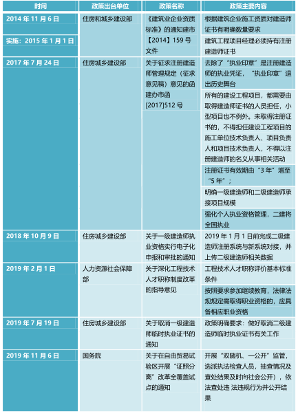 1.  政策规定对建筑行业逐步规范,专业技术人员必须持有执业资格证书,企业资质也对