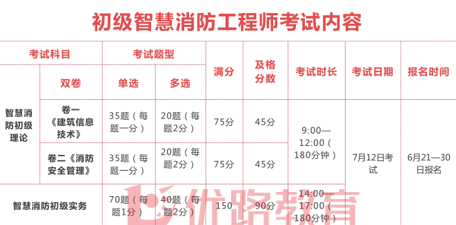 以上是南京优路教育为你整理关于消防工程师培训课程介绍,如需了解更多的培训班、课程、价格、试听等信息,您可以点击在线客服,也可以在线留言,我们课程顾问会尽快联系您,为您定制专属课程,开始您的学习之旅。