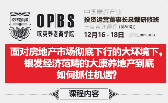 旗下欧英养老商学院,秉持“实战、实操、实用、实效”的培训理念,依托欧英明德咨询集团及天佑安康康养集团十余年的养老实操经验和专业支撑,联合业界知名人士,通过专题讲