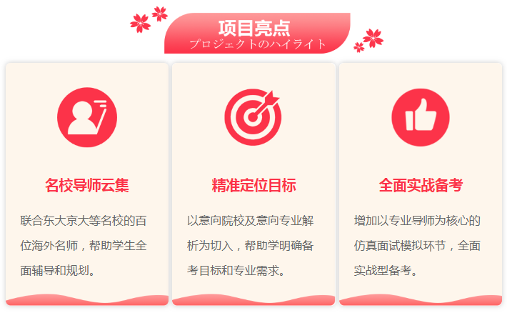 新东方欧亚教育为意向申请日本修士/研究生的学生量身打造的精品项目。通过为学员提供覆盖全领域专业的大学院专业课程辅导、修士入学考试辅导课程、研究计划书专业辅导课程,旨在为中国学生申请日本知名院校的过程中,增强自身的专业能力和笔试面试能力,从而提高知名院校直考录取率和研究生申请合格率。