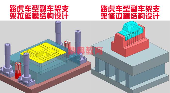 成形工艺模拟分析和展开防回弹讲解,UG模具设计外挂讲解,单工序钢板模:拉延模,修边模,翻边模,冲孔和侧冲结构讲解剖析。