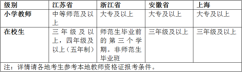 申请参加中小学教师资格考试的人员,应符合教育部《中小学教师资格考试暂行办法》规定的基本条件,并具备如下学历条件: