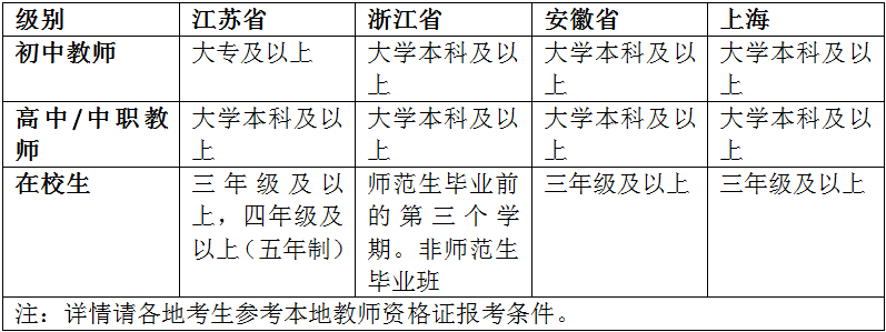 申请参加中小学教师资格考试的人员,应符合教育部《中小学教师资格考试暂行办法》规定的基本条件,并具备如下学历条件:
