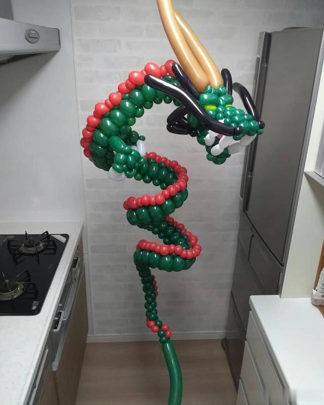 就是这条龙,眼熟吗,它是鸟山明漫画《七龙珠》里的神龙,非常形象,很难想象它完全是用气球制作出来的。