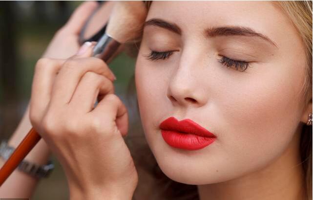 如果喜欢自然的唇妆效果,或者口红颜色太艳,可以在涂好唇膏后,只在嘴唇中间涂上唇膏,然后用唇刷抹开,这样出来就很淡很自然。