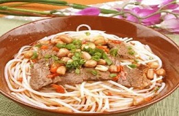 桂林米粉的制作方法也多种多样,其中较经典较美味的就是用卤水制作的米粉了。-的米粉,倒入浓郁的卤水,汤汁四溢,美味喷鼻。其中还有各种食材,包括卤牛肉片、火腿、黄豆、酸菜等等,相当丰富。香喷喷、热腾腾的一碗桂林米粉端上桌,挑起一柱米粉,夹起美味的食材,舀起浓郁的汤汁,实在是诱惑难挡,美味可口。