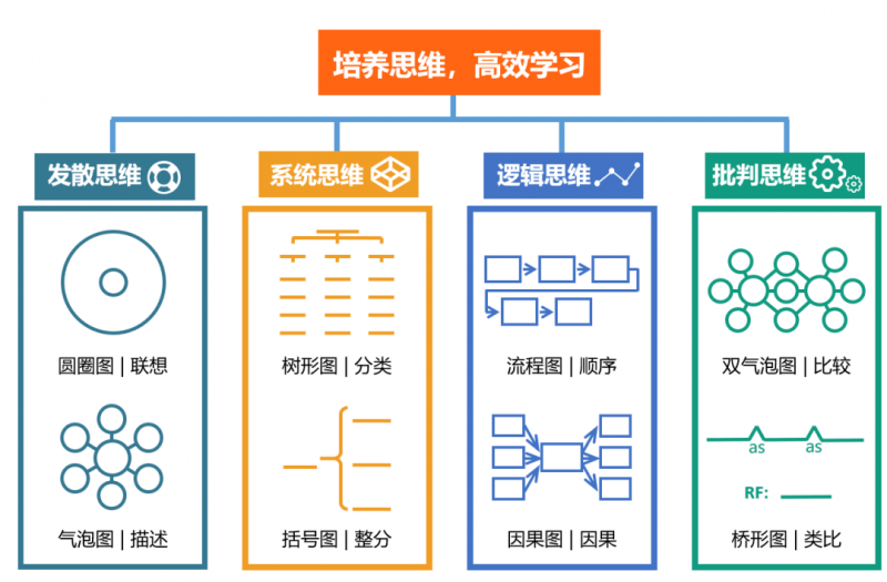 协助学员展开扩散思维。提高学习效率,更快地学习新知识,复习整合旧知识,激发学员联想和创意,帮助学员形成系统的学习和思考习惯。