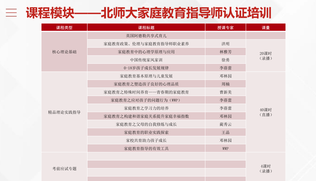 以上内容是关于家庭教育指导师的有关介绍,如果你对相关培训感兴趣,电话联系我们,了解精彩文章资讯可以关注职业培训栏目,您也可以在线咨询客服。