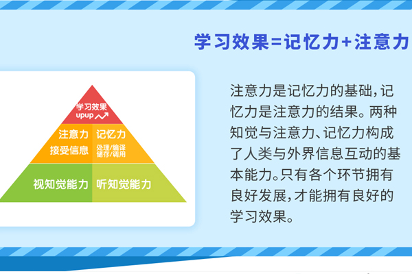 因此, 40 分钟的课程,孩子在课堂上发生走神、注意力不集中,是一种正常现象,绝大部分孩子也不可能向 “ 机器人 ” 那样,按程序和标准做事。但是,这些现象如果是可控的,比如上课走神了,能马上意识到、或者在老师的提醒下,把注意力重新聚焦到课程上,也就不会影响学习。而注意力训练,一是提高孩子的集中注意力的时长;二是建立走神后,能自动把注意力拉回课程的良好习惯。