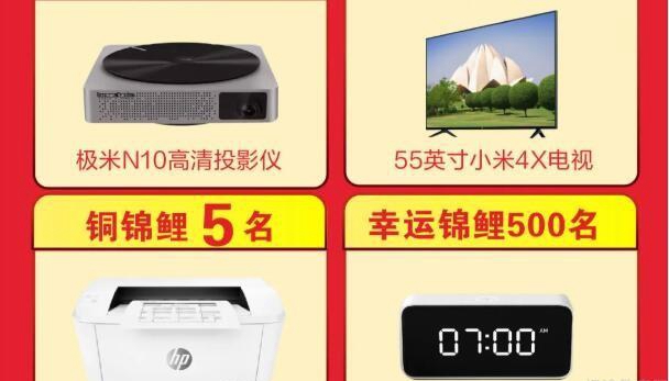 55英寸小米4X电视、极米N10高清投影仪、惠普M16a打印机、小米智能闹钟