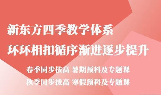 郑州新东方一对一广为人知的就是他们的四季教学体系,环环相扣循序渐进逐步提升。分为春季同步提升、暑期预科及专题课、秋季同步提升、寒假预科及专题课。目前暑期和秋季的已经报名结束了,春季提升和寒假预科课程都在火热招生中。
