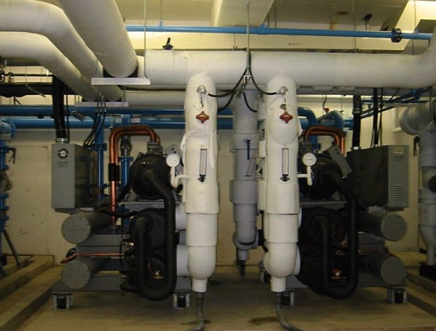 中央空调的广泛使用,改善了人们的工作和生活环境,但是随着空调的运行,循环水的浓缩和温度变化,水中各种离子浓度积超过其本身的浓度积时,就会生成沉淀,形成水垢,而水中溶解氧的存在和其它因素的联合作用又易引起设备的腐蚀。循环水中营养物的不断富集,又为藻类和细菌的滋生提供了充足的养分,形成生物粘泥。这些水垢、粘泥及腐蚀物会导致换热器热交换效率降低、制冷量下降;使循环水量减少、管道堵塞,冷量输送不畅,给中央空调的安全运行带来严重的危害。因此,有必须对中央空调的水系统进行清洗。