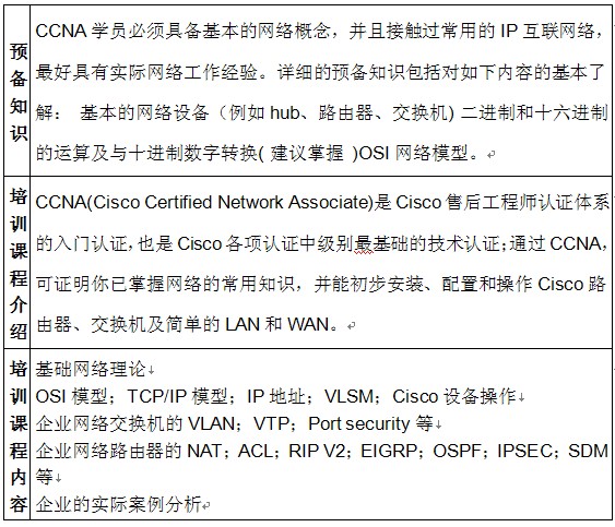 初中、高中(中专、职高等)以上文化,企业职工及在职人员﹑各大专院校在校学生及要求获得网络技术知识的电脑兴趣人员均可报名参加思科认证培训。