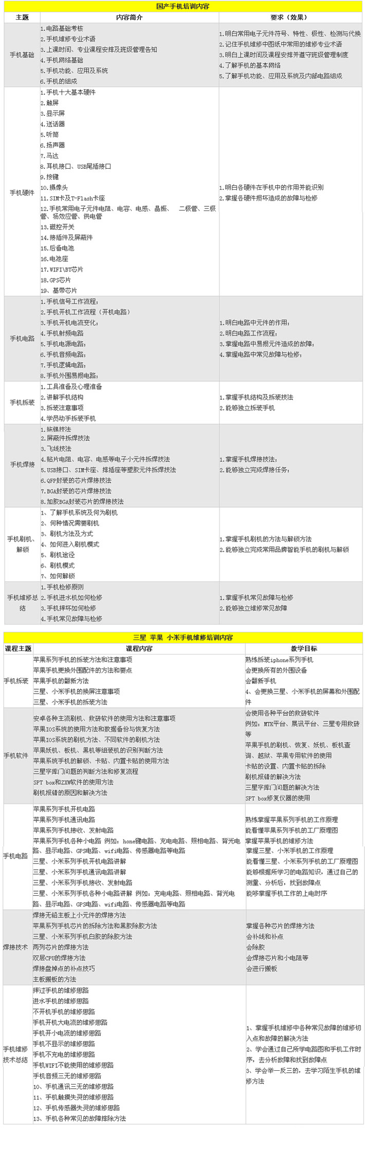 高端智能手机维修培训