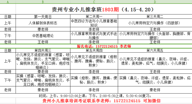 六盘水小儿推拿培训师资哪里好, 正规的小儿推拿培训班(详情咨询李老师157-2212-4515可加微信