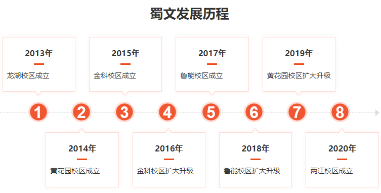 蜀文教育总部,以渝中为根基,坐拥黄花园校区、金科校区、鲁能校区、两江校区、中央公园校区、沙坪坝校区、张家花园校区、宏帆八中校区、鲁能高三校区、两江八中校区、蜀文教育研究院等十一大核心校区。现已推出涵盖各年级精品名师1对1及小班课程、中高考全日制特色课程、艺术生文化课辅导及各类升学服务课程的一站式升学服务课程体系。我们坚信,精准定位与兴趣激发并举,全面助力学生步入理想院校。
