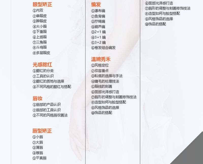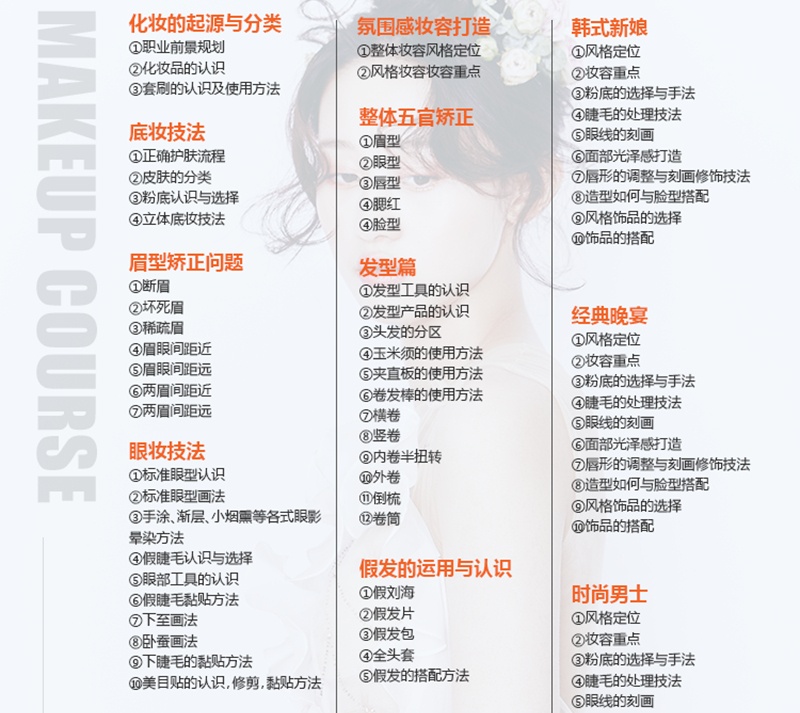 新娘跟妆基础班旨在培养具备专业新娘跟妆技能的人才,使学员能够熟练掌握新娘妆容的设计、化妆技巧及发型设计,为新娘提供多方位的美妆服务。